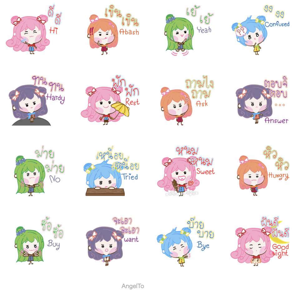 Candy Kawaii Girl Theme - ธีมเด็กลูกกวาด กลุ่มเด็กน้อยน่ารัก มีสีสันสดใสราวกับลูกกวาดแสนหวาน มีนิสัยที่ชอบพูดซ้ำๆ แบบเด็กๆ ธีมลูกวาด